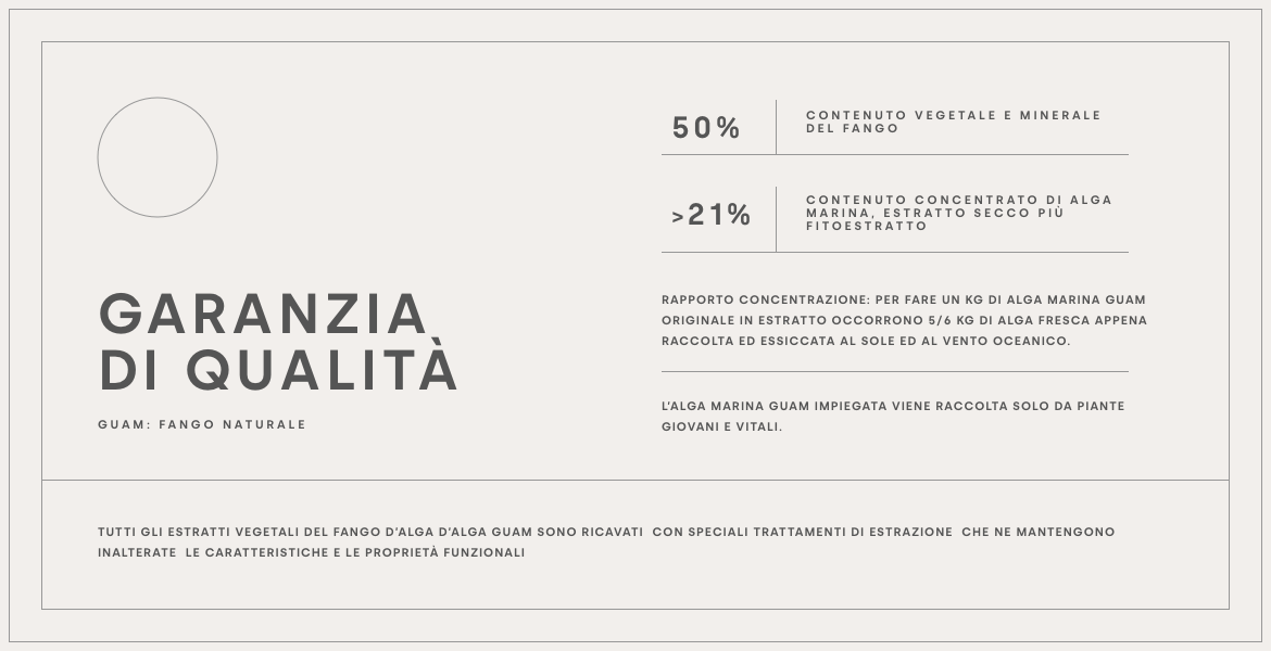 I over tretti år har oppskriften på Guam Sea Weed Mud forblitt uendret, og typen tang som brukes er den samme, samlet inn fra havene ved hjelp av den tradisjonelle metoden. Fra og med måneden mai, når tangen er ung og vital, begynner høstingen, på båter, med et gammelt instrument (kalt "scoubidou"): tangen samles inn og trekkes opp fra havbunnen uten å skade morplanten, for deretter å slippes tilbake i vannet.