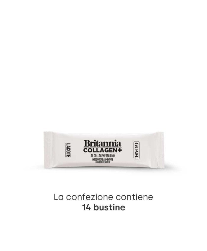 Kollagen er det mest abundante proteinet i kroppen vår, og det spiller en viktig rolle i å gi struktur, støtte og elastisitet til hud, hår, negler, bein og ledd. BRITANNIA COLLAGEN+ inneholder ikke hvilket som helst kollagen: det inneholder faktisk HYDROLYSERT MARINT KOLLAGEN, som absorberes lettere i kroppen vår og derfor kan spre seg effektivt til ulike deler av kroppen. I GUAM BRITANNIA COLLAGEN+ finner du også stoffer som forsterker den gunstige virkningen på huden: