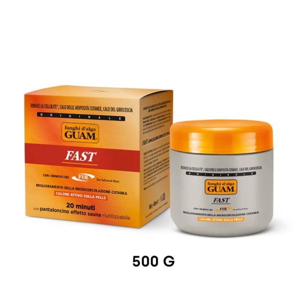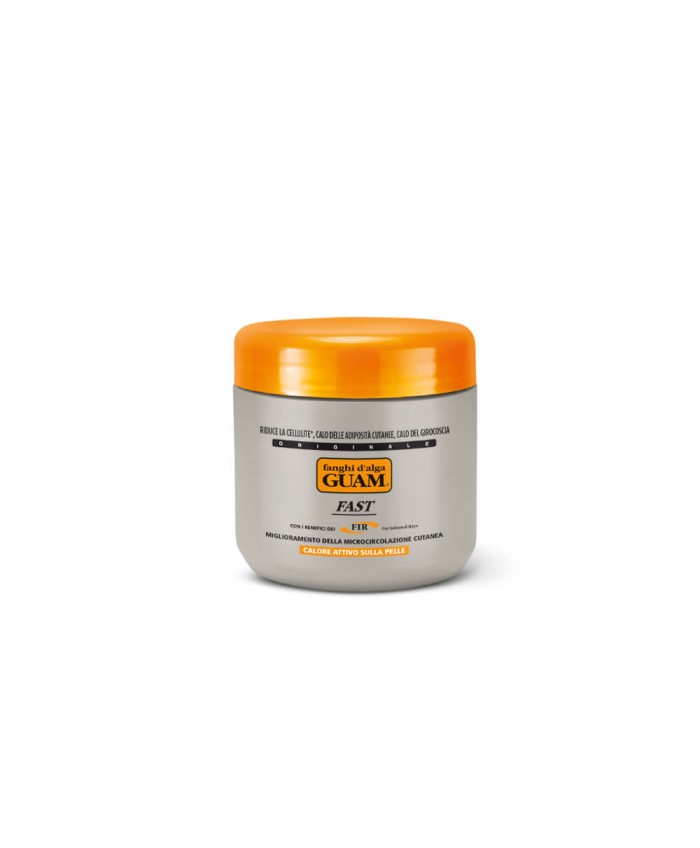 Guam® FAST F.I.R. Seaweed Mud er en intensiv behandling som gir resultater fra første påføring, og reduserer cellulitter*, hudfettavleiringer og låromkretsen takket være de anerkjente egenskapene til Guam® Marine Algae, i synergi med fordelene fra infrarøde stråler (FIR) og andre plantebaserte ingredienser. Formelen genererer en behagelig følelse av aktiv varme på huden, varme som absorberes av FAST F.I.R. Mud og sendes ut igjen i form av infrarøde stråler (FIR), noe som forbedrer hudens mikrosirkulasjon